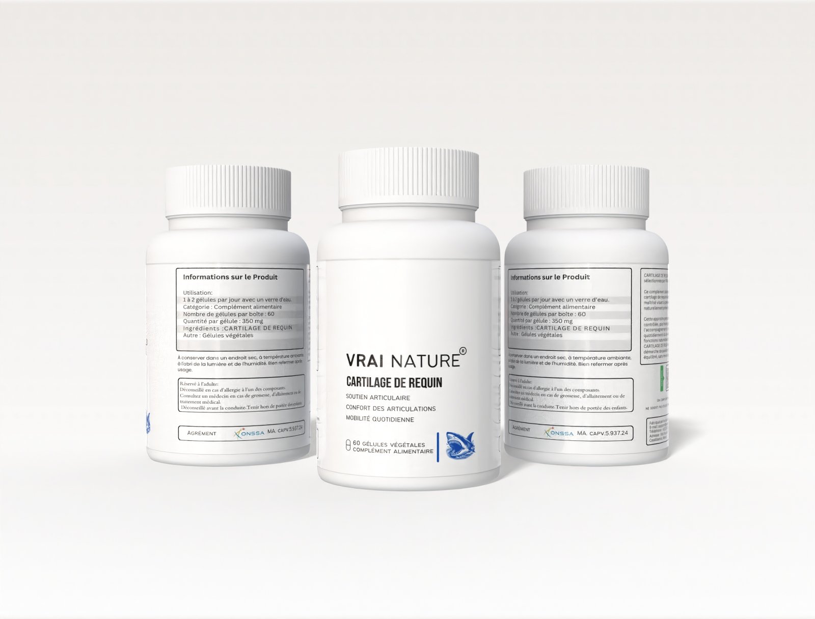 Le cartilage de requin de VRAI NATURE® est un complément alimentaire d’origine marine, formulé pour accompagner le confort des articulations, la mobilité quotidienne et le bien-être articulaire dans le cadre d’un mode de vie sain et équilibré.
